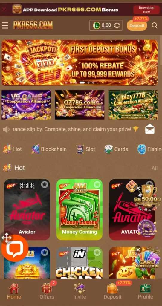 Ans, PKR656 is an online casino-style gaming platform where users can play different games and earn rewards in Pakistani Rupees.